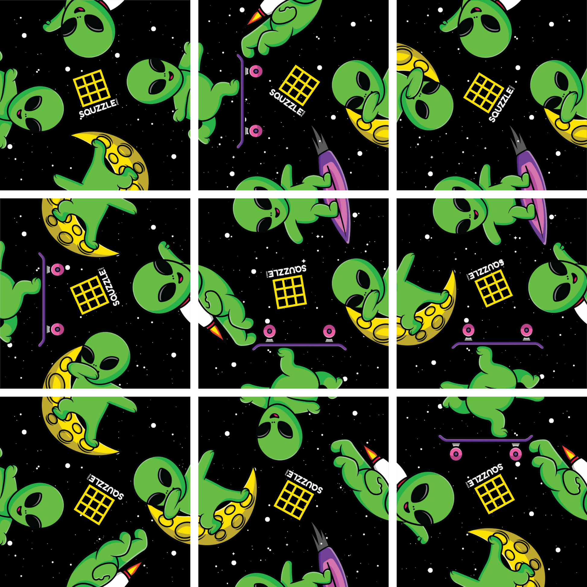 Discover Squzzle Puzzles – a captivating 9-piece brain teasing square puzzle that will have your mind in circles! Arrange and rearrange the pieces into a 3x3 grid so each interior image has a match with its opposite half. Twist and turn your way through this mesmerizing square puzzle that will have your mind spinning!