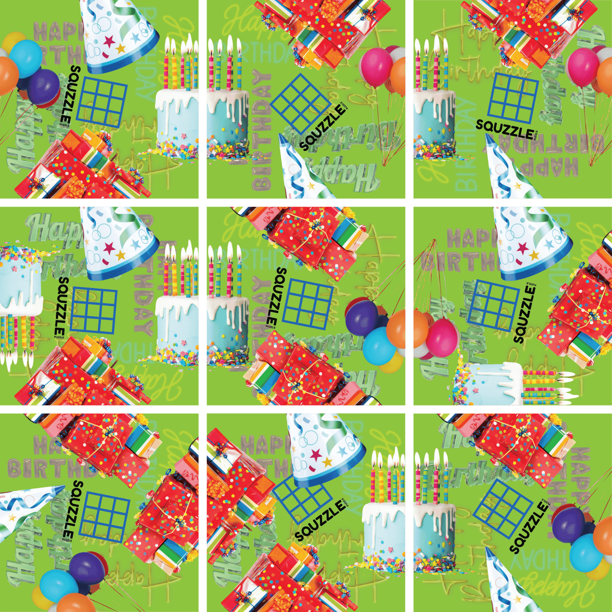 Discover Squzzle Puzzles – a captivating 9-piece brain teasing square puzzle that will have your mind in circles! Arrange and rearrange the pieces into a 3x3 grid so each interior image has a match with its opposite half. Twist and turn your way through this mesmerizing square puzzle that will have your mind spinning!
