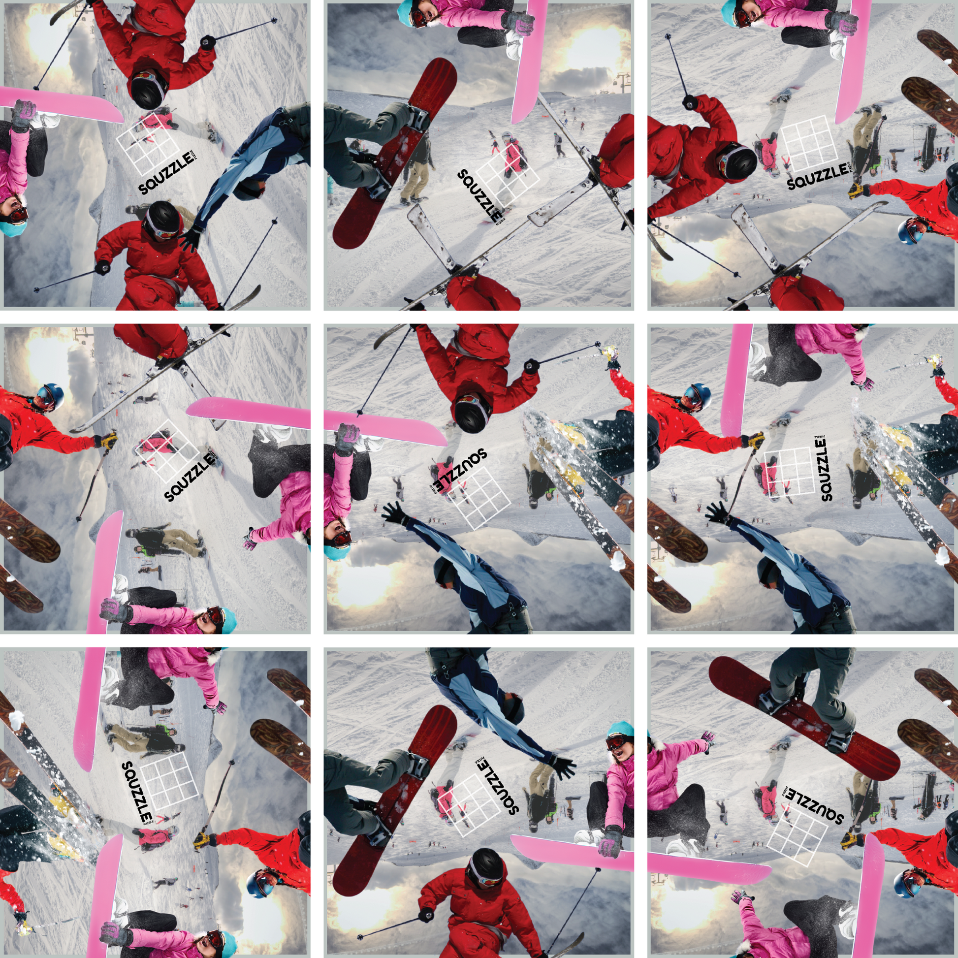 Discover Squzzle Puzzles – a captivating 9-piece brain teaser puzzle that will challenge your mind! Arrange and rearrange the pieces into a 3x3 grid so each interior image has a match with its opposite half. Twist and turn your way through this mesmerizing square puzzle that will have your mind in circles!