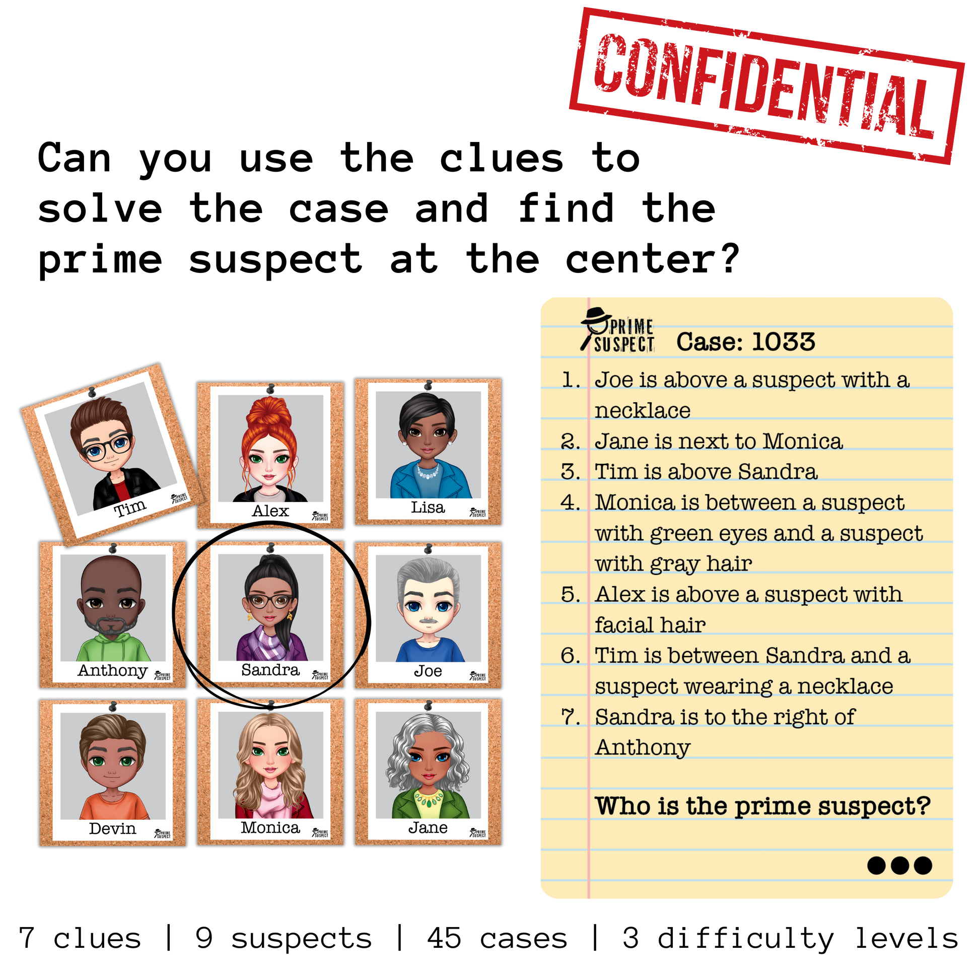 Fun for players aged 8 years and up, Prime Suspect is sure to be a hit!