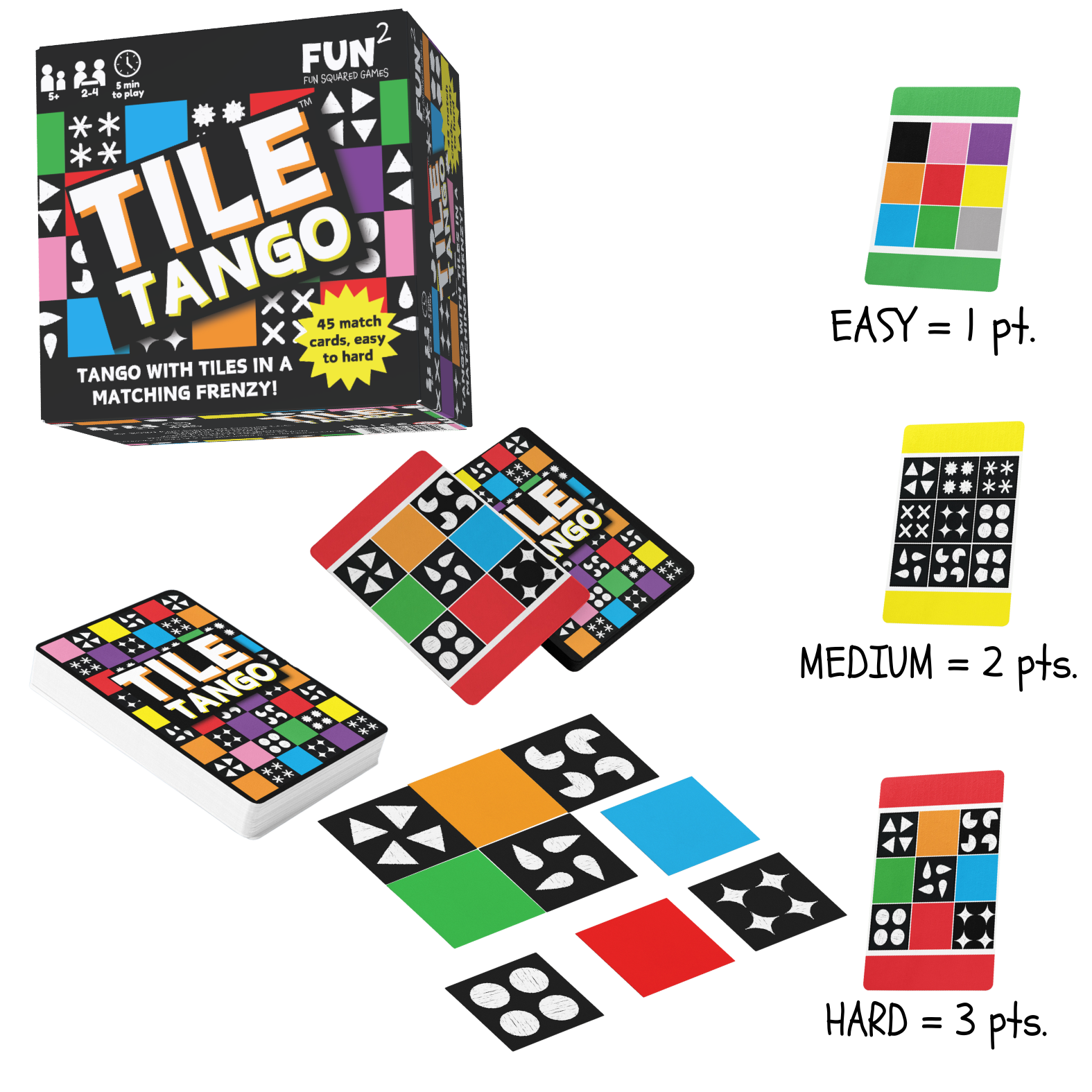 Tile Tango is a fast-paced game for up to 4 players where players’ speed, pattern recognition, and spatial orientation skills are challenged.
