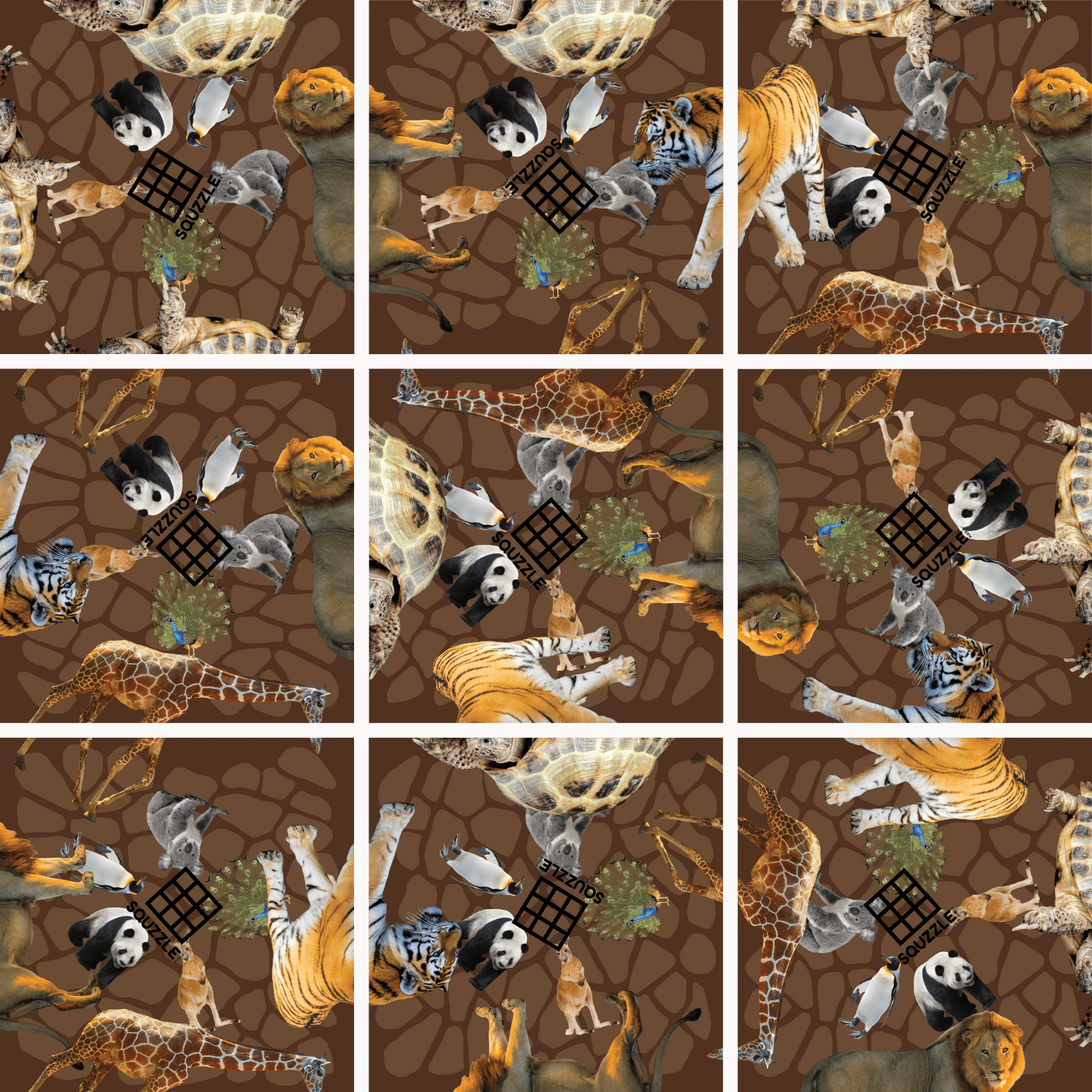 Designed for convenience, Squzzles come packaged in a compact 4.5"x 4.5" x 0.5" bag. Each Squzzle piece measures 3in x 3in with the entire puzzle measuring 9in x 9in when arranged in a 3x3 playing grid to solve. Play at a restaurant, on an airplane or at home- Squzzles are the perfect brain game.